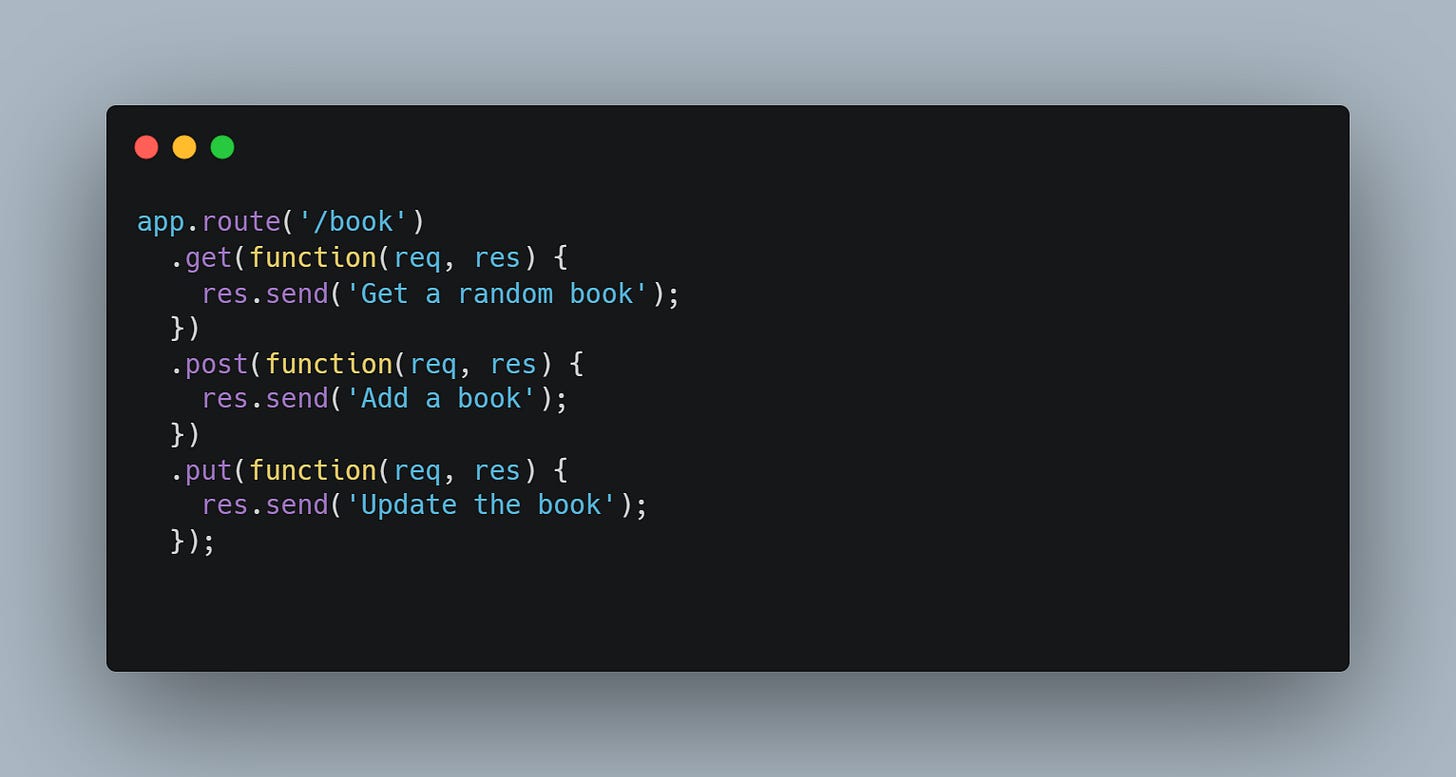 app.route( ) its just a fancy way to organize middlewares on the same route, chaining and encapsulating all methods in a specific path to later attach it to the main application.